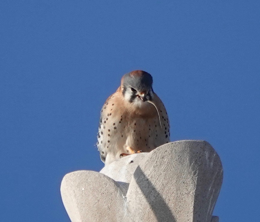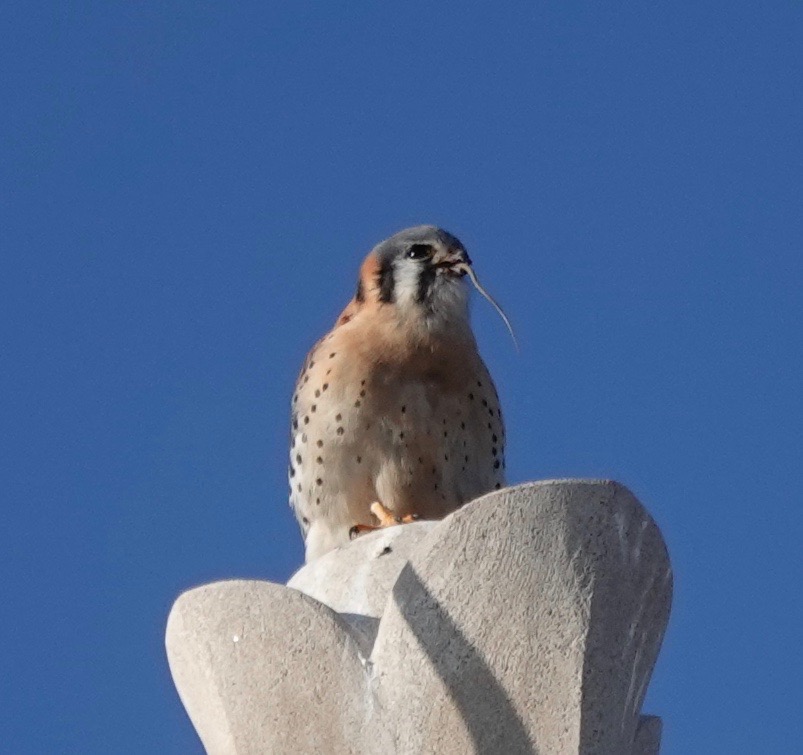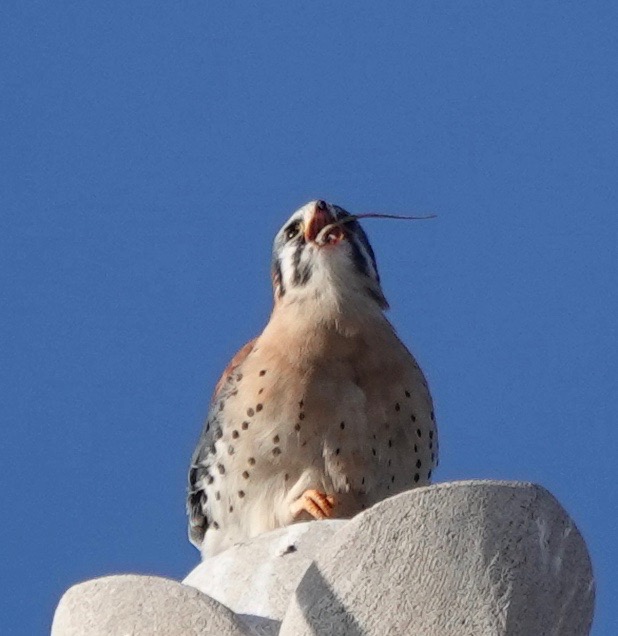 Well, it wasn’t exactly the Feast of the Seven Fishes, but this male Kestrel grabbed a lizard off the ground and dispatched it like an appetizer and then three minutes later