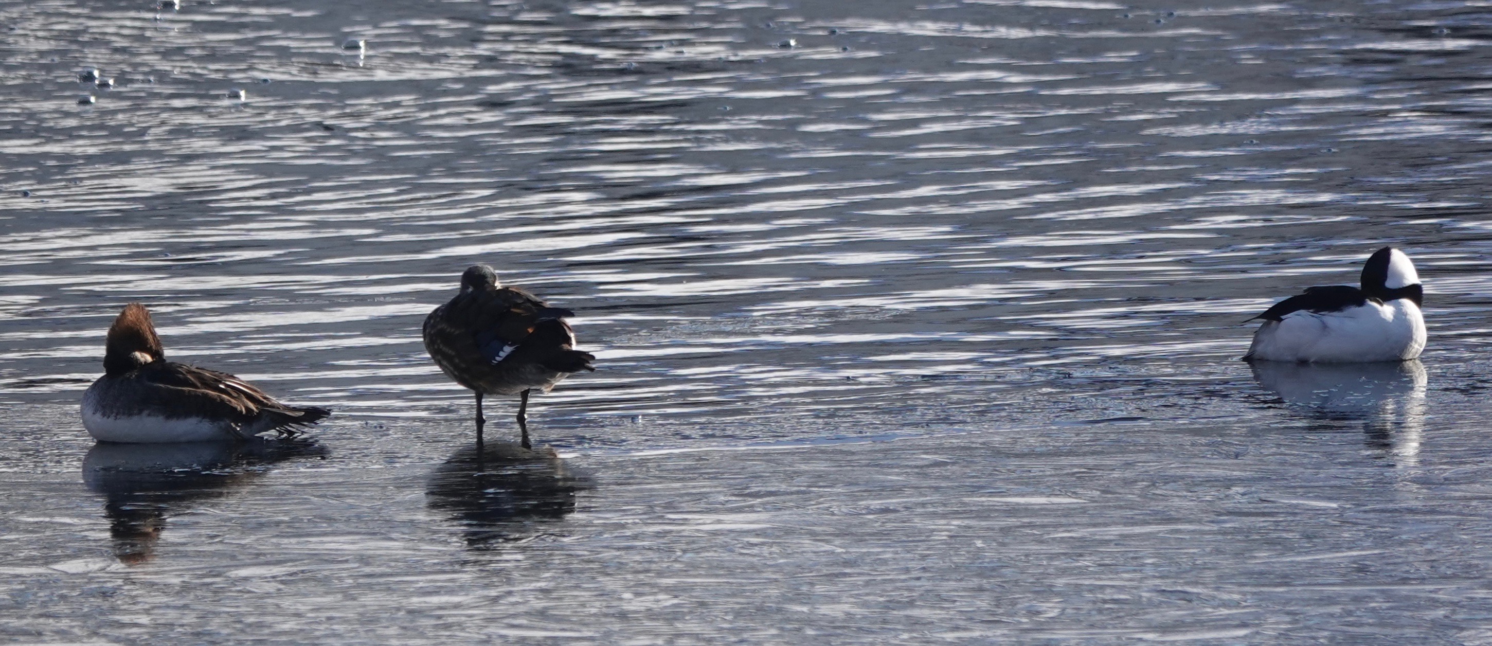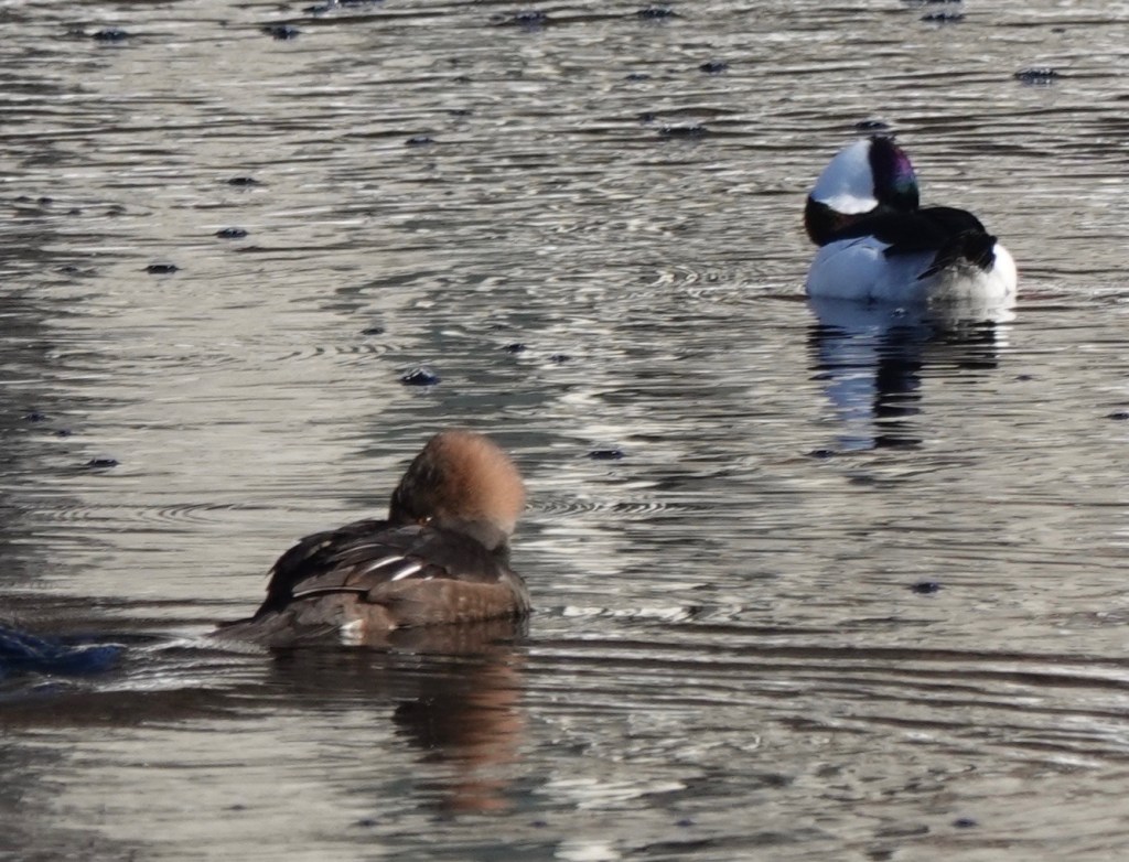 A female Hooded Merganser and a male Bufflehead (one of two).