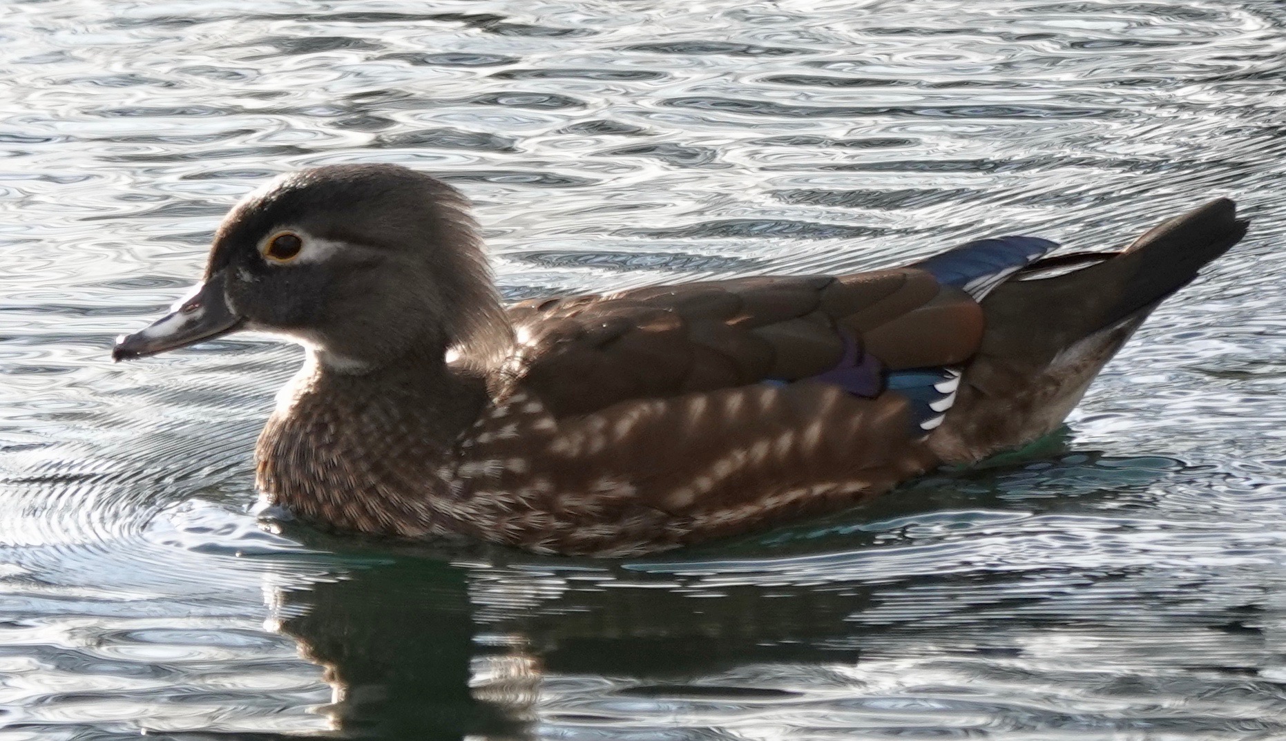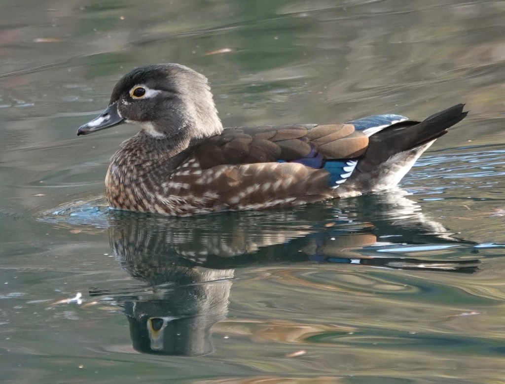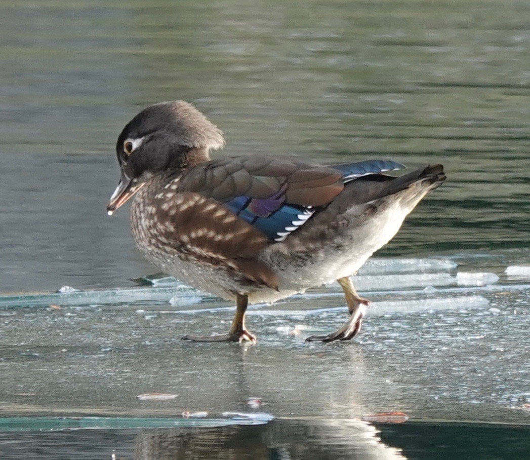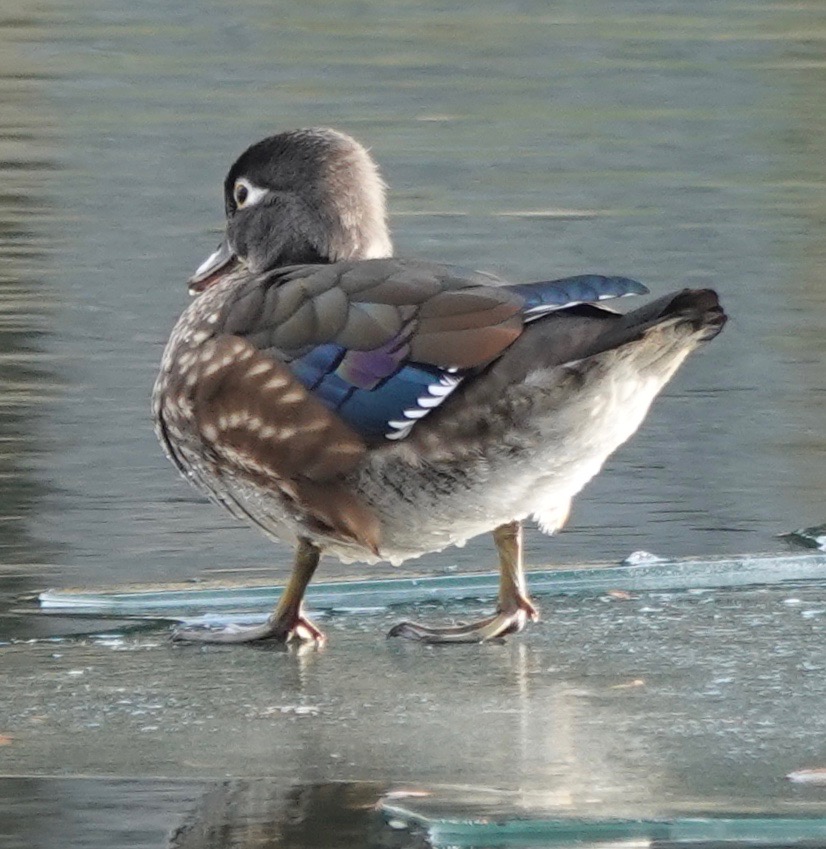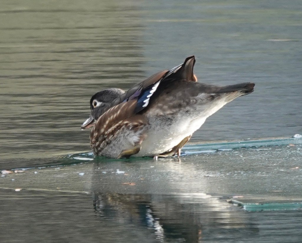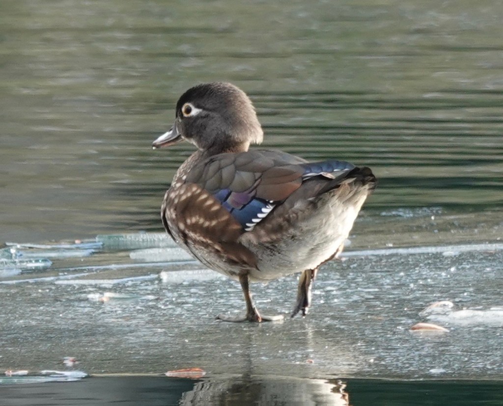 This time it’s a female Wood Duck on half-iced Crescent Water.