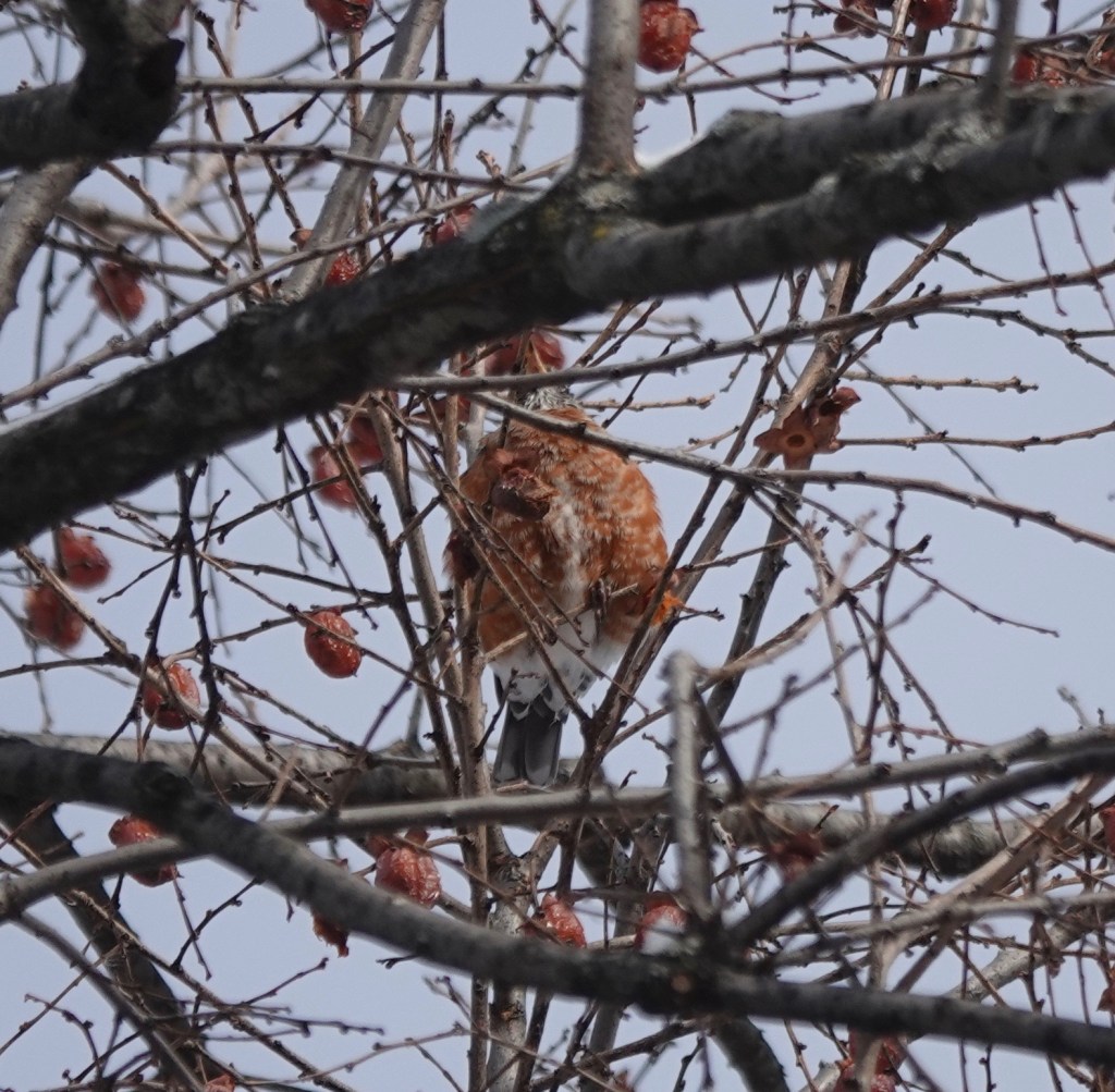 I keep seeing a flock of American Robins around the Persimmon/Diospyros virginiana trees.