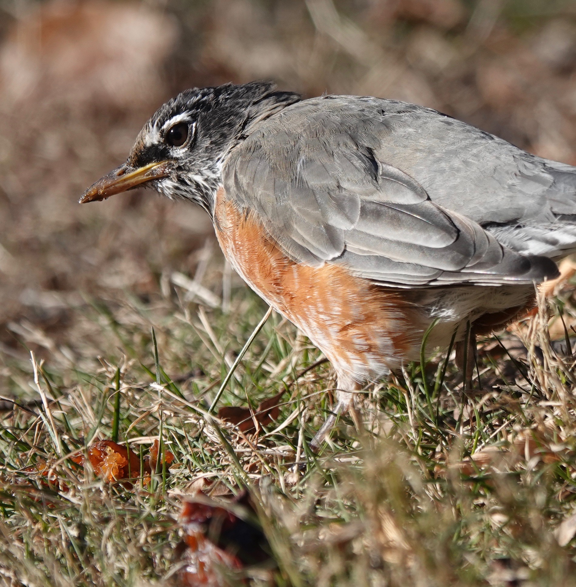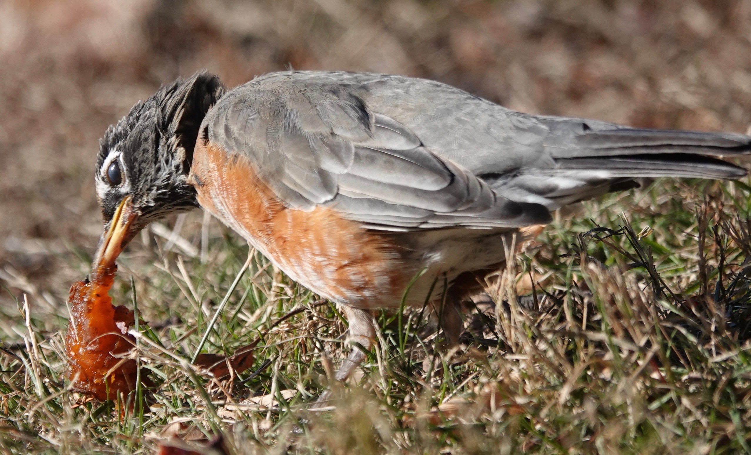 I keep seeing a flock of American Robins around the Persimmon/Diospyros virginiana trees.