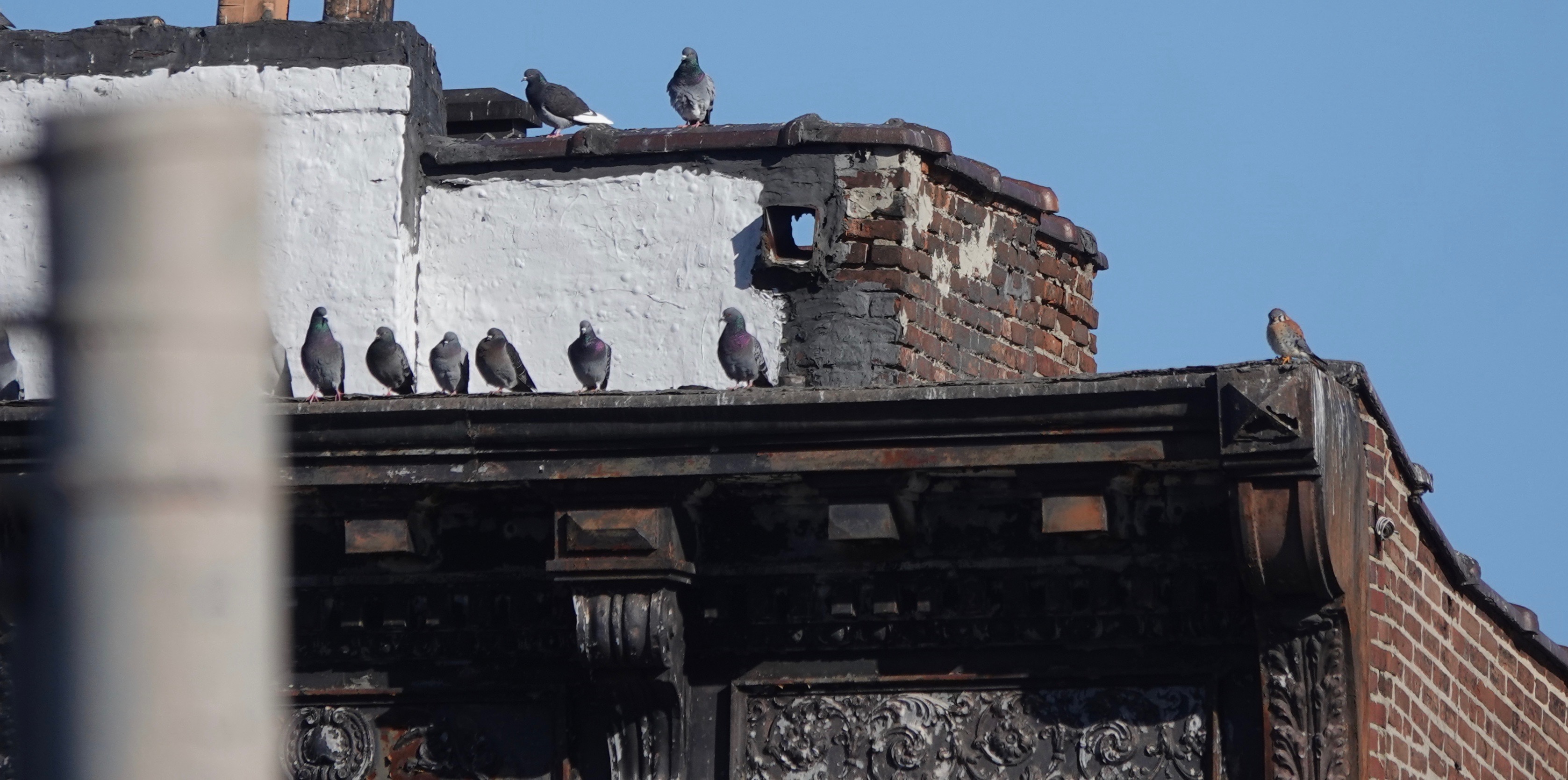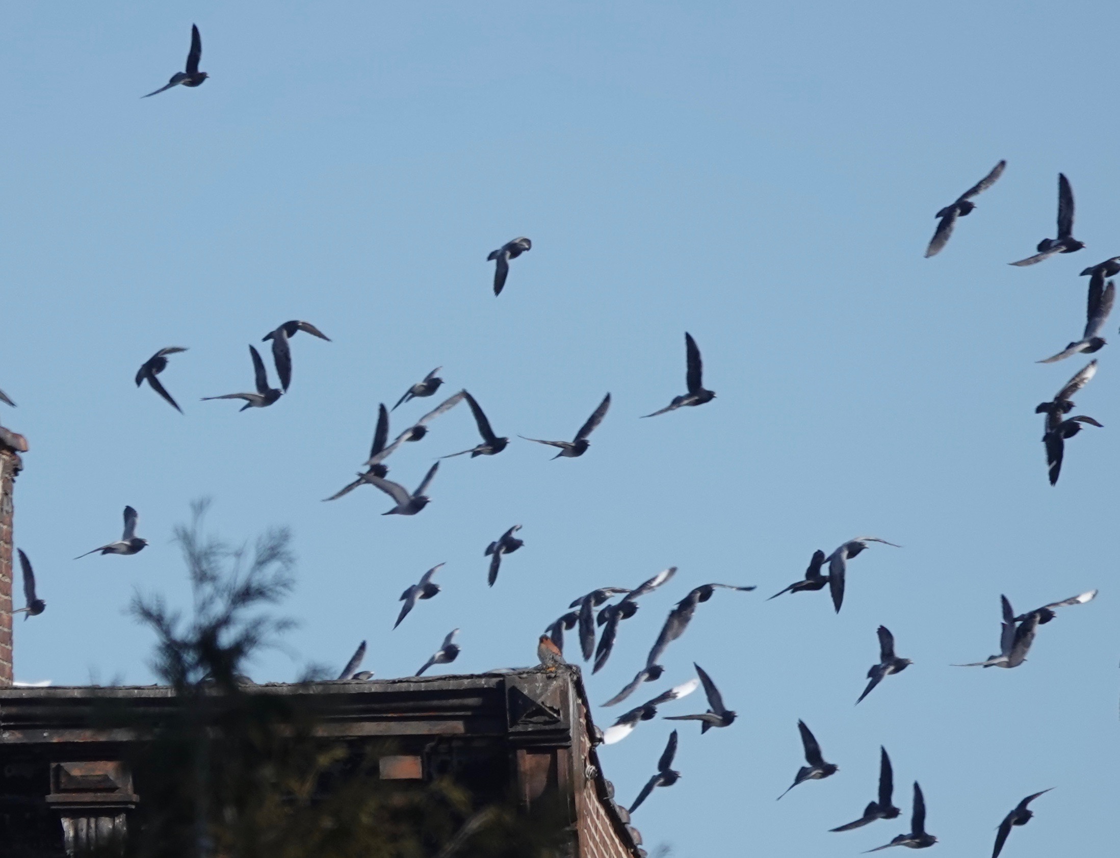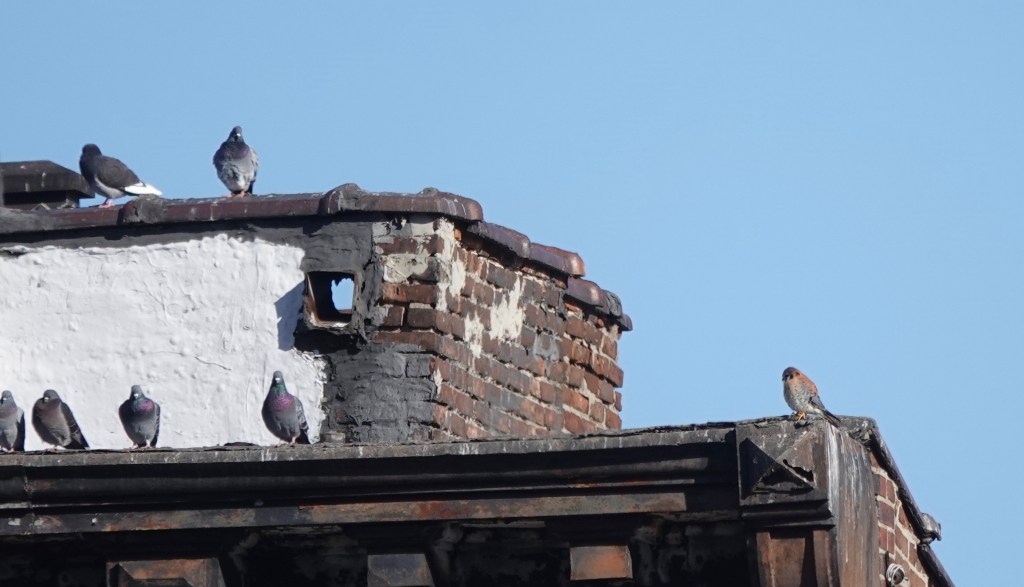 January 12: first time I’ve spotted the male American Kestrel on the nest cornice this year.