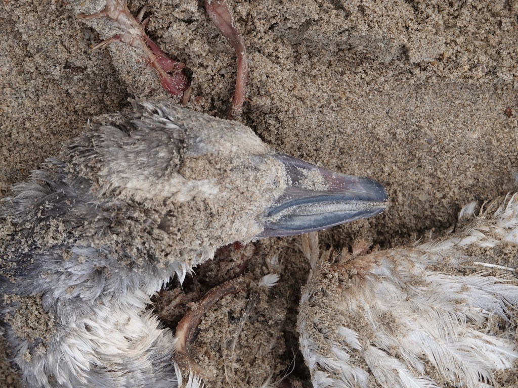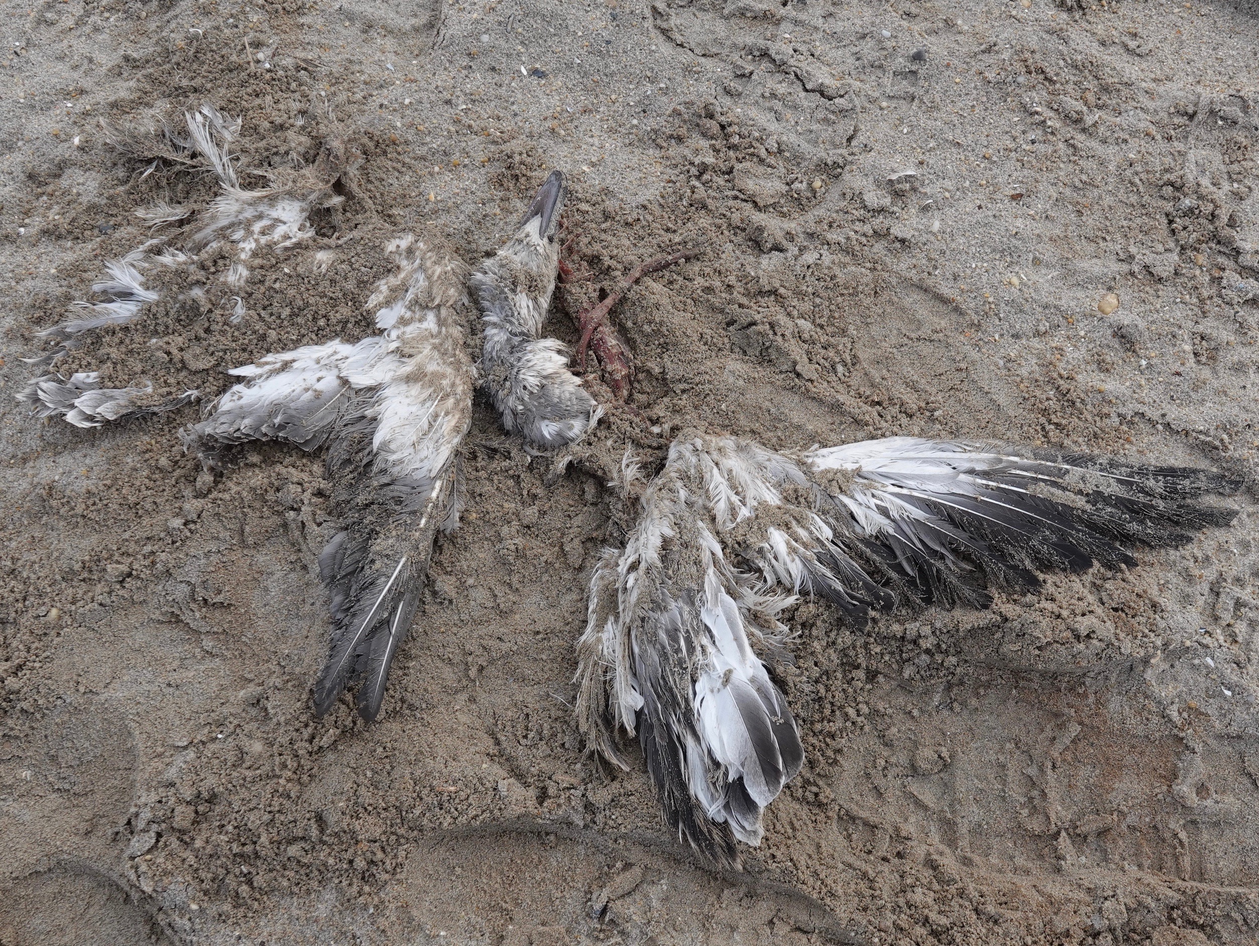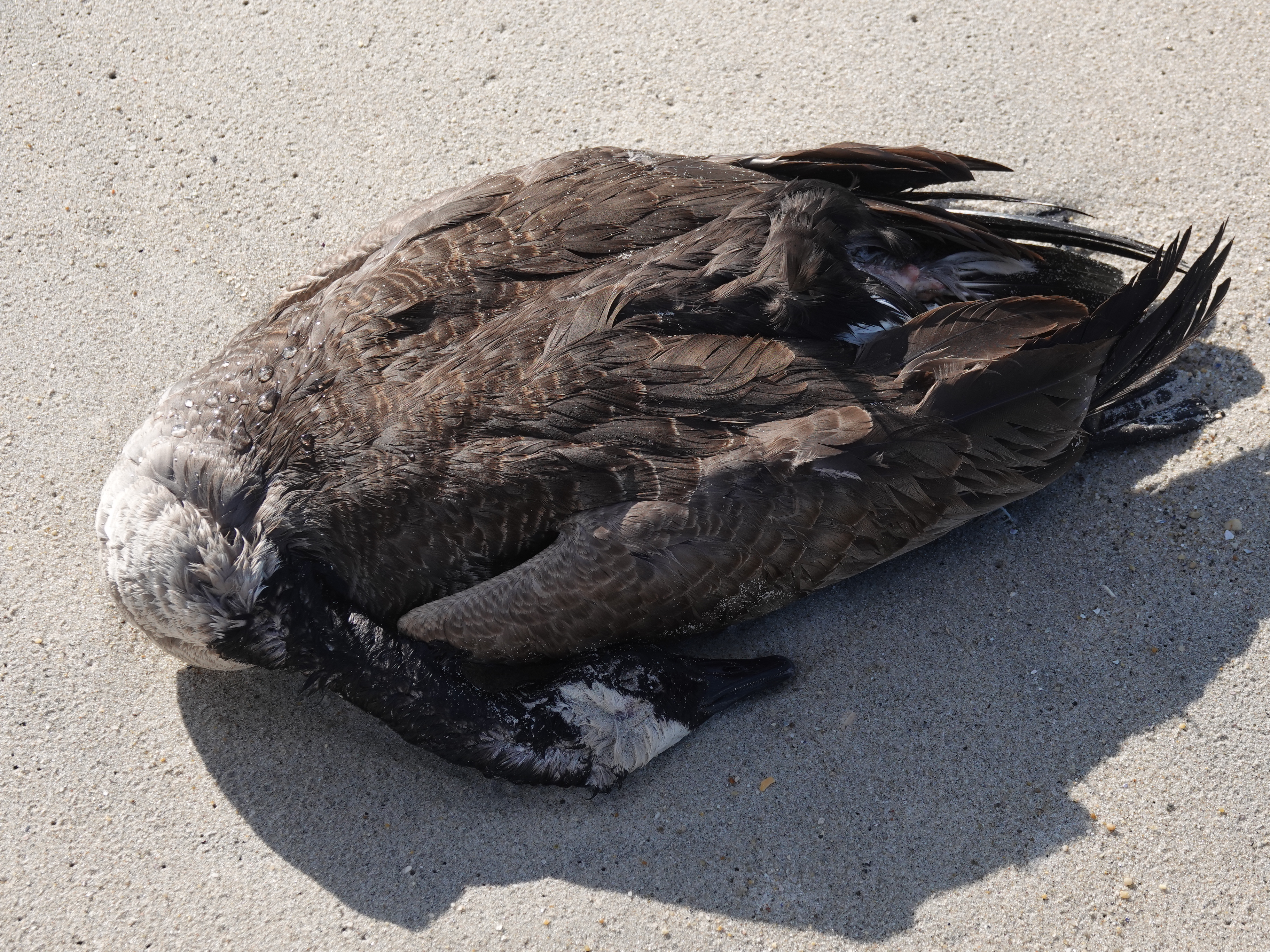 Snow Goose and Canada Goose corpses on Rockaway beach.