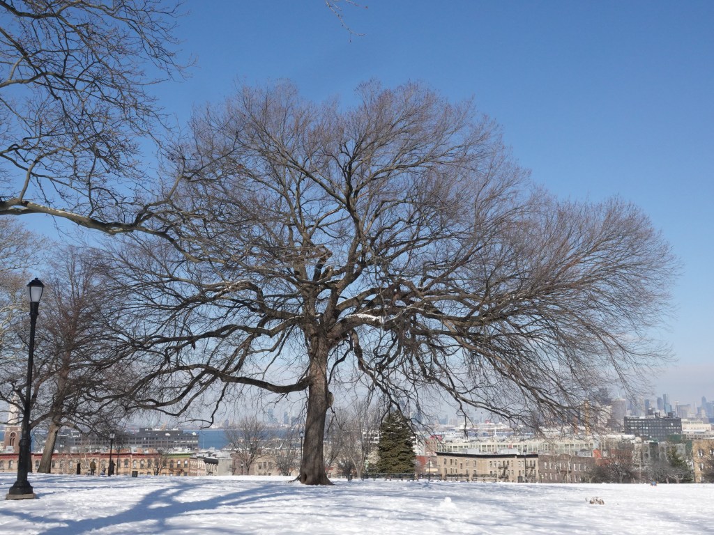 The Sunset Park elm isn’t the same without its great horizontal branch, cut off a few years ago, but it’s still an impressive survivor.