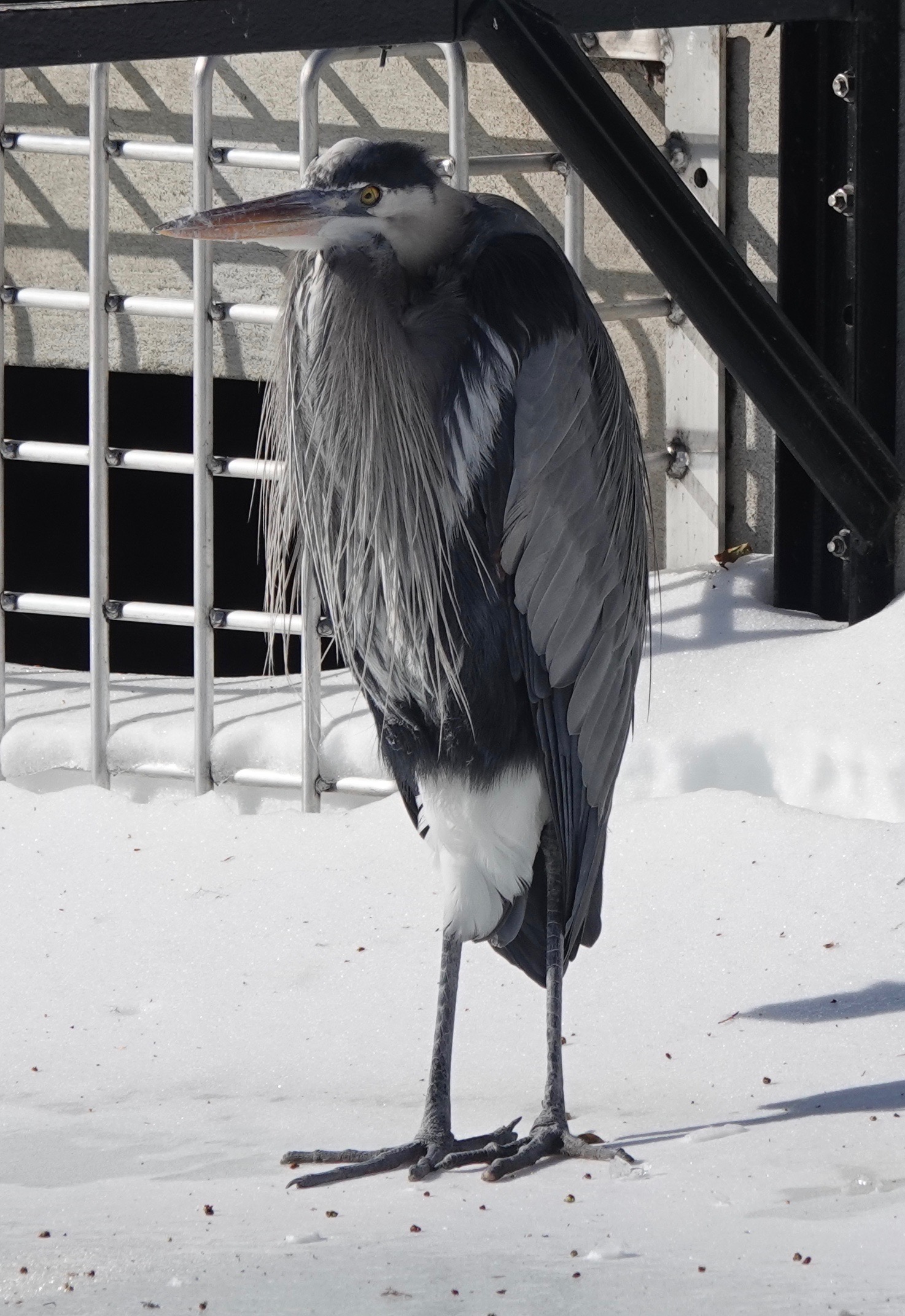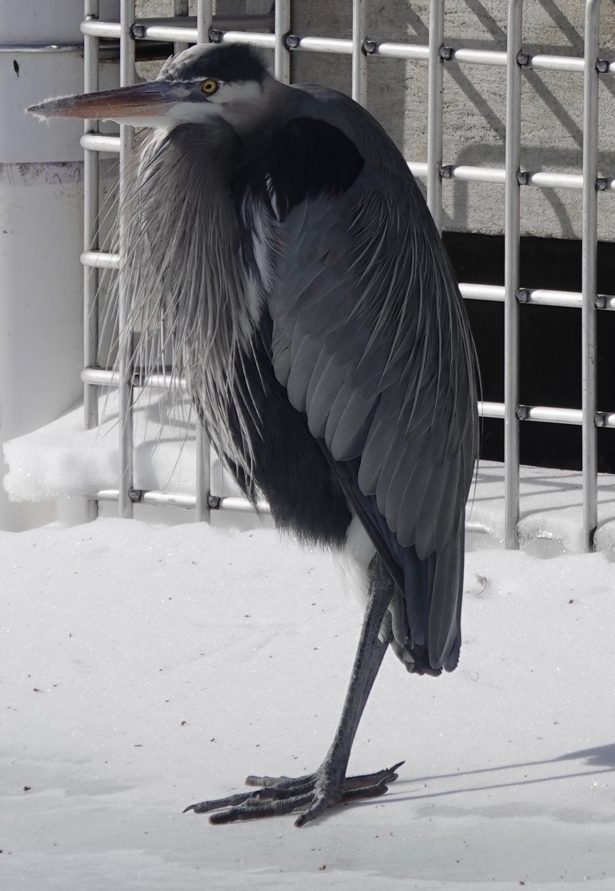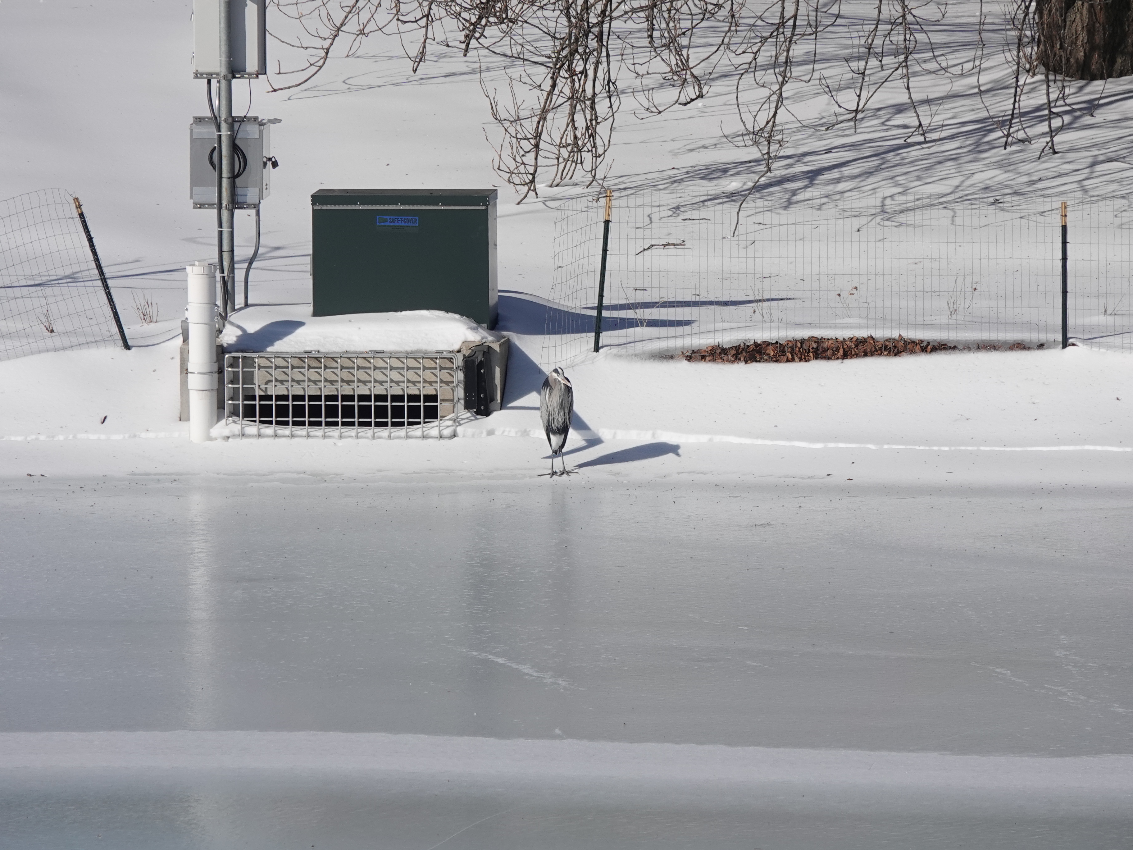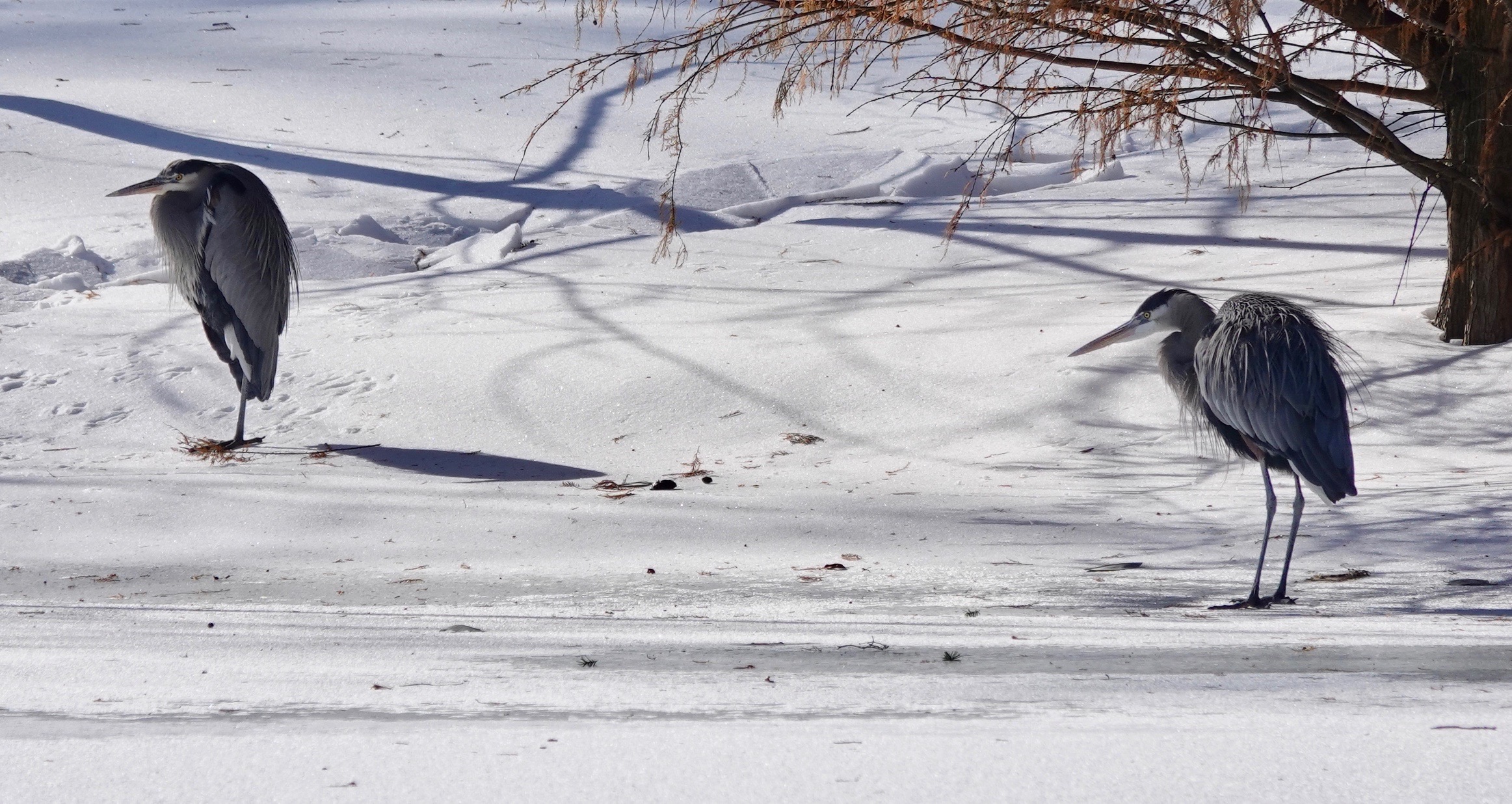 There were two Great Blue Heron’s on mostly frozen Sylvan Water a week ago.