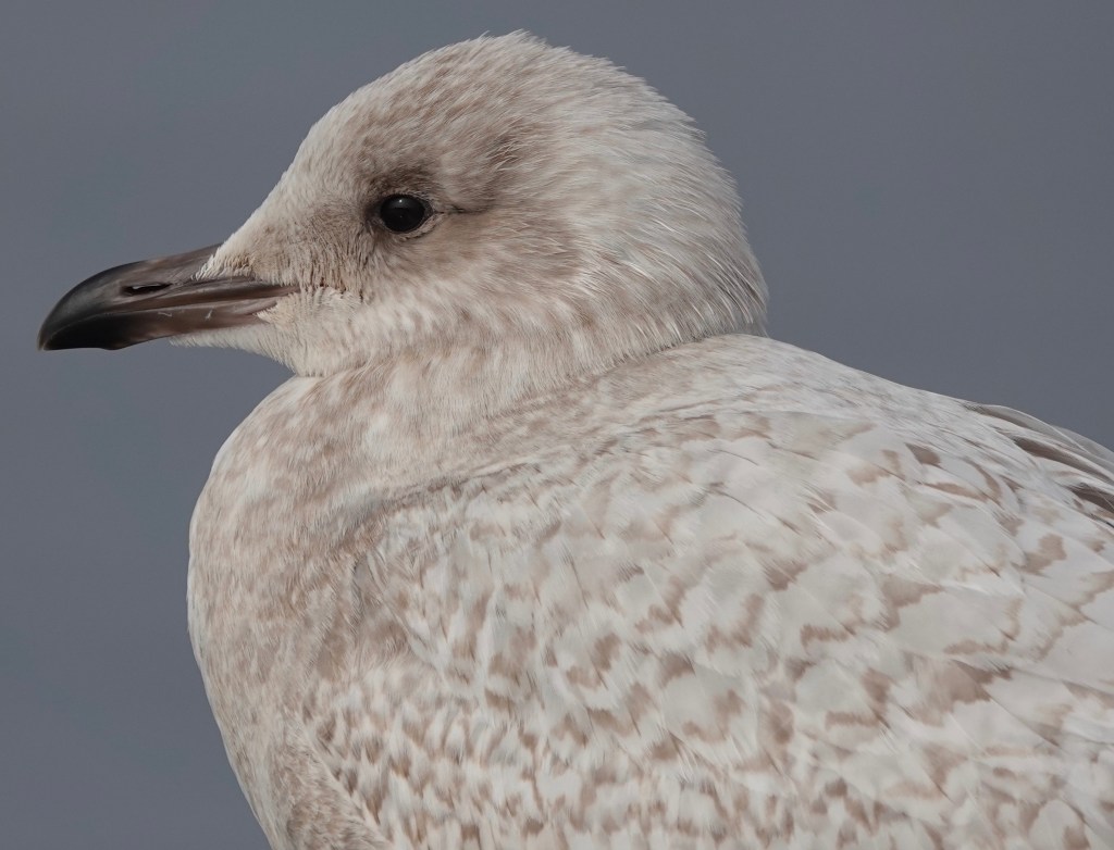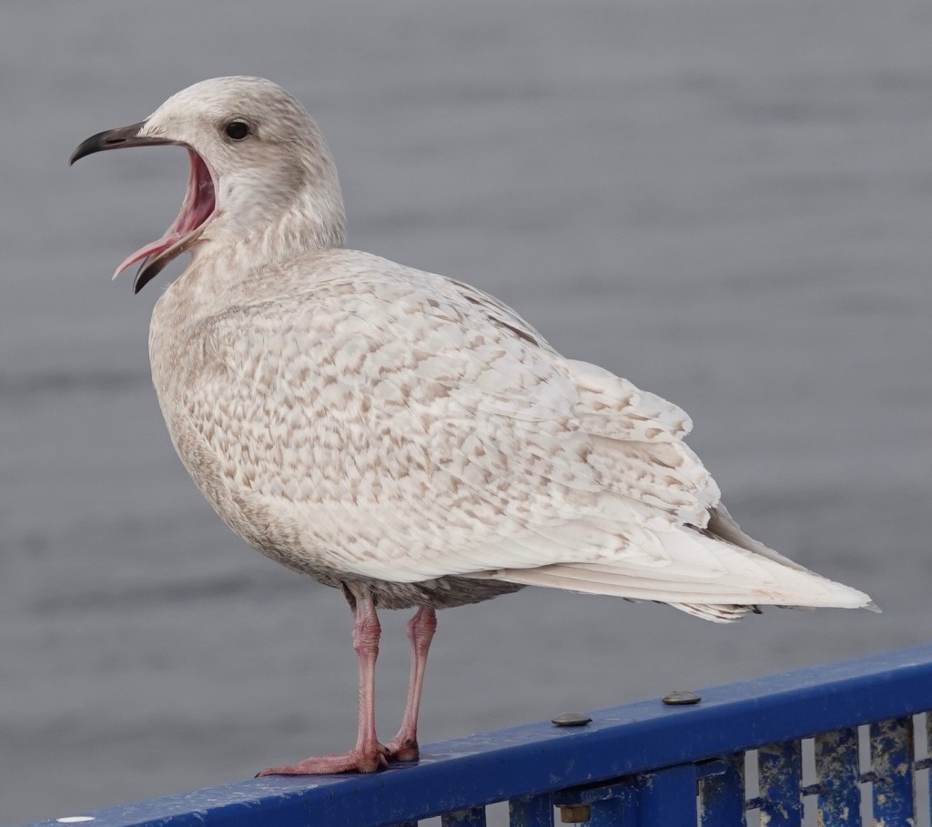 First winter Iceland Gull/Larus glaucoides. Presumably the kumlieni subspecies (of three). Rare here, and rarer still to get such close-up looks.