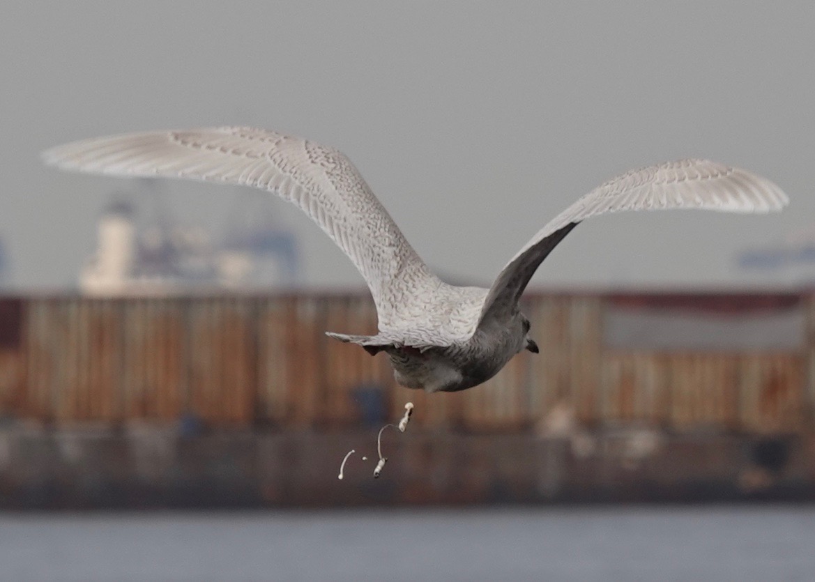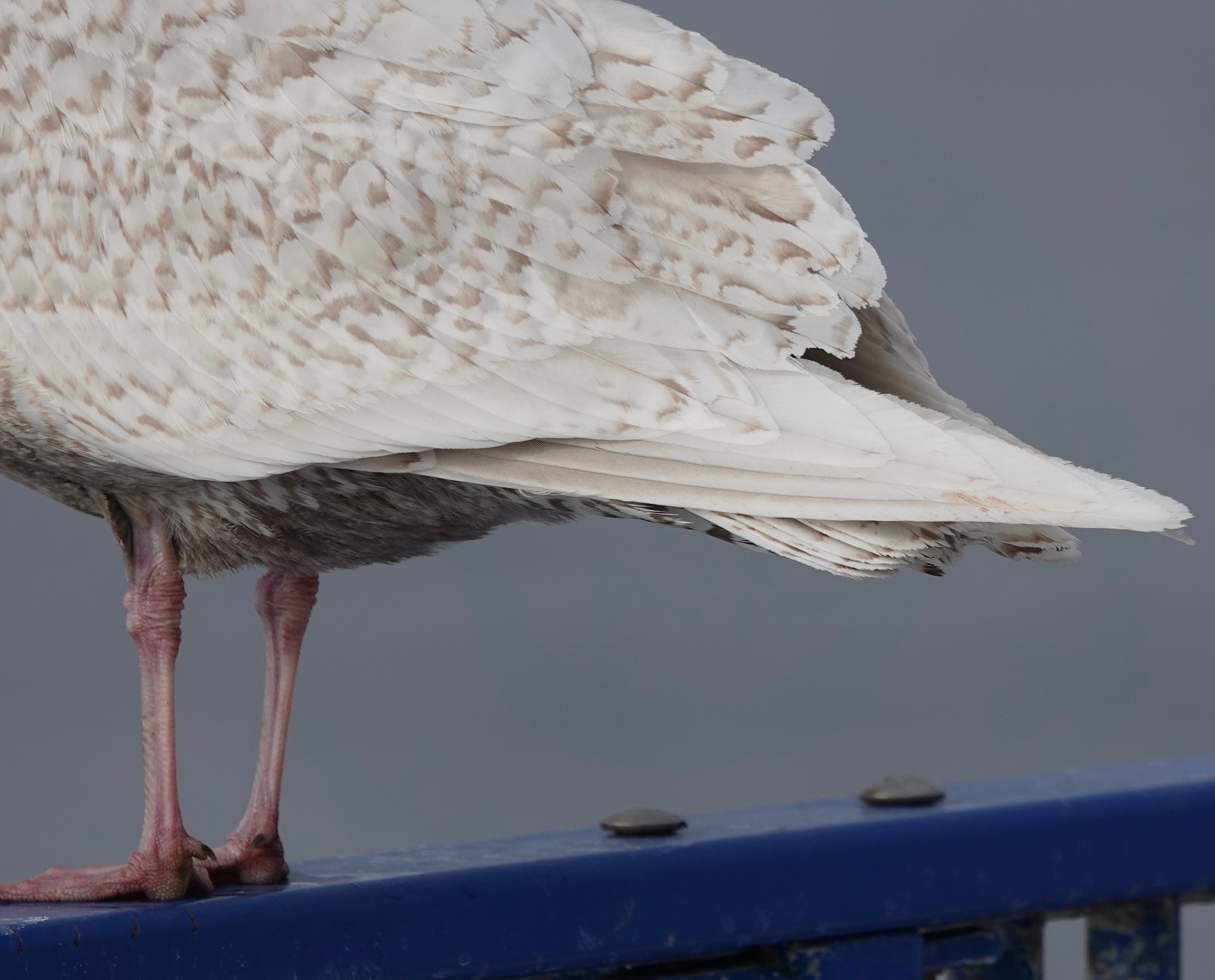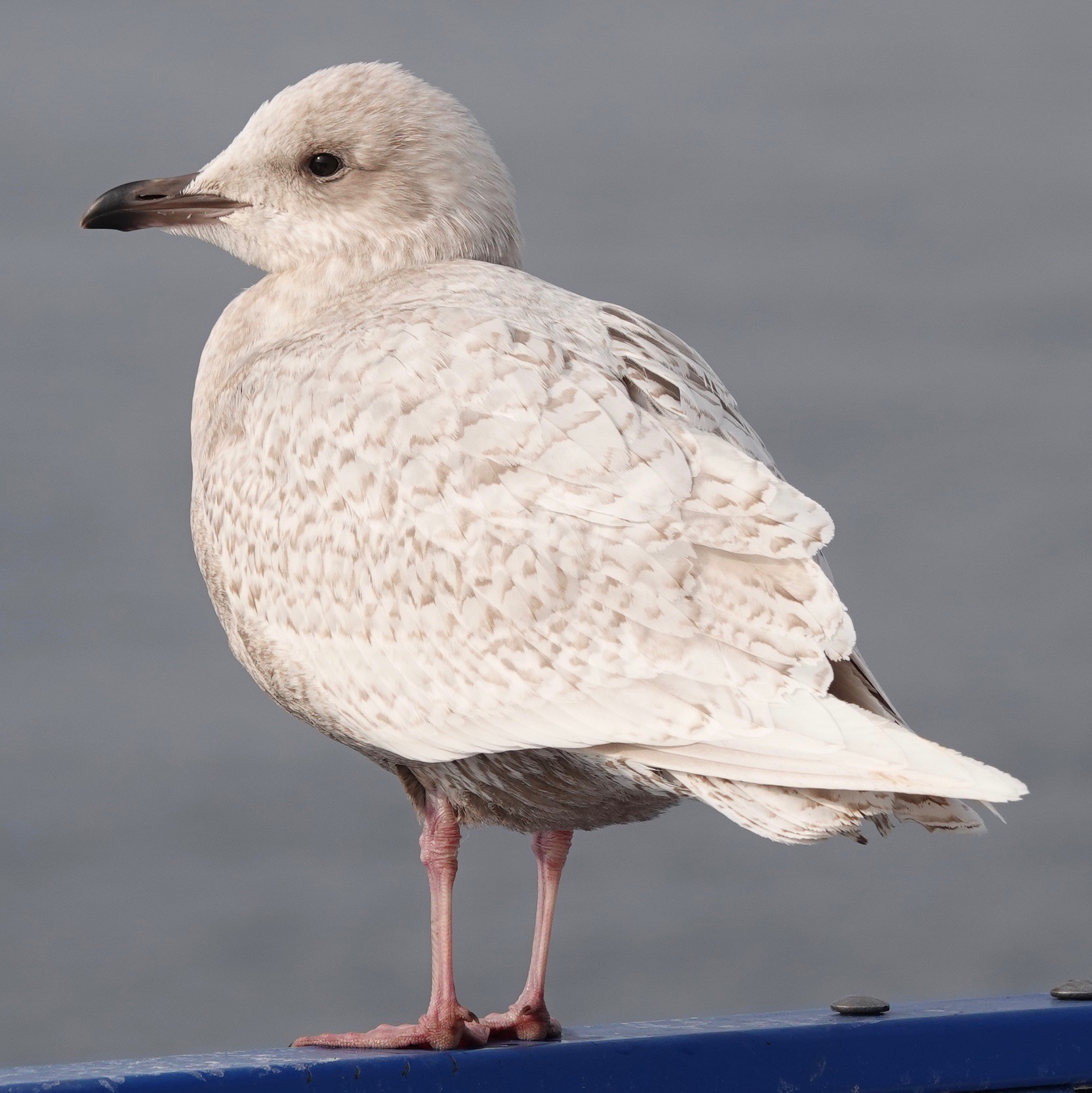 First winter Iceland Gull/Larus glaucoides. Presumably the kumlieni subspecies (of three). Rare here, and rarer still to get such close-up looks.