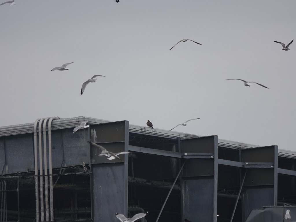 The crows were unwilling to share. The Swainson’s was buzzed while perched, and when something caused a storm of gulls and crows to whirl into the sky, a couple of crows chased the hawk to the north.