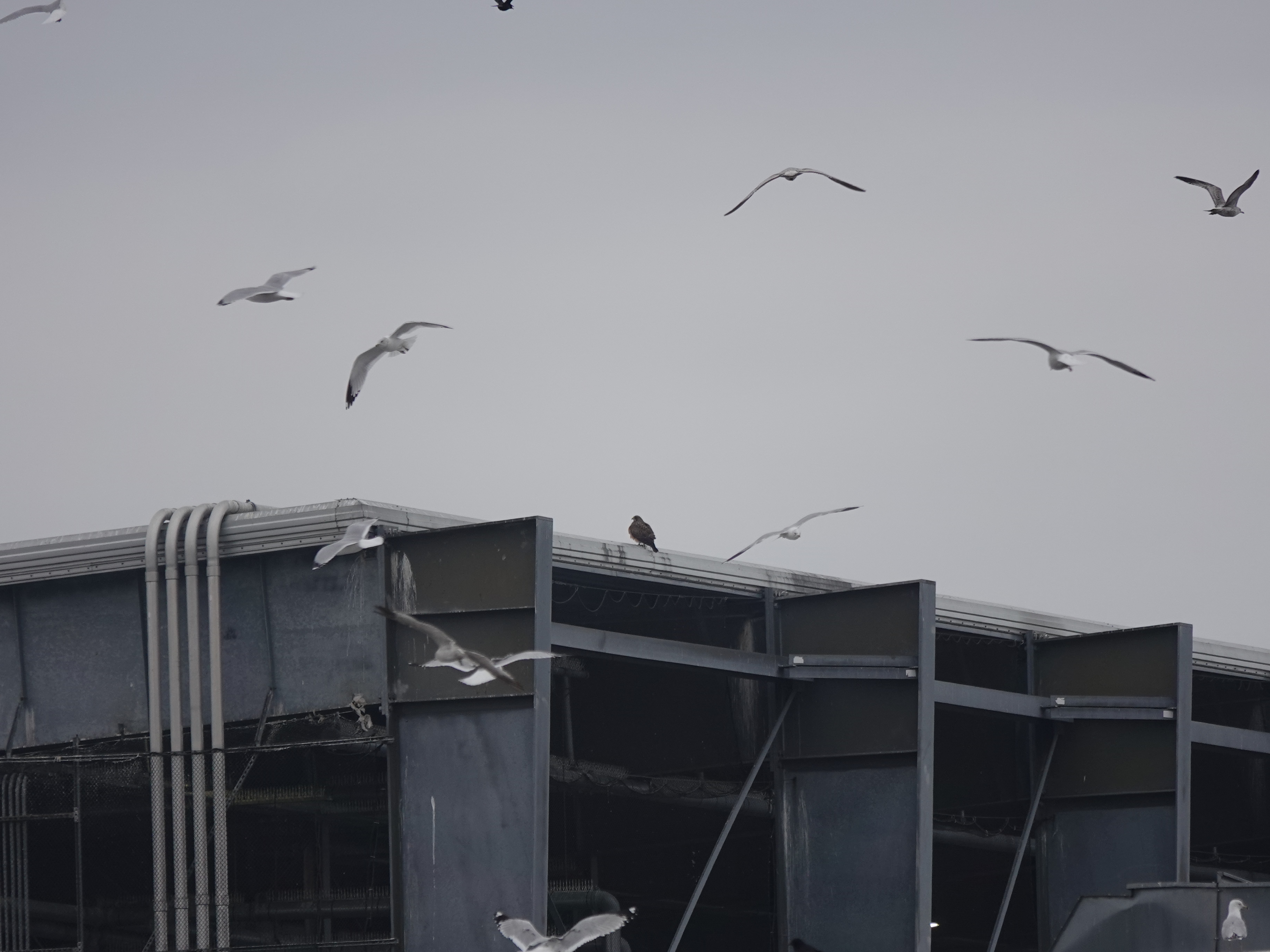 This year’s sighting, last week. Note that the bird, which is presumed to be the same individual, is now sporting adult plumage. Unfortunately, you can’t get into that facility unless you’re a gull or crow, so these photos are from far away.