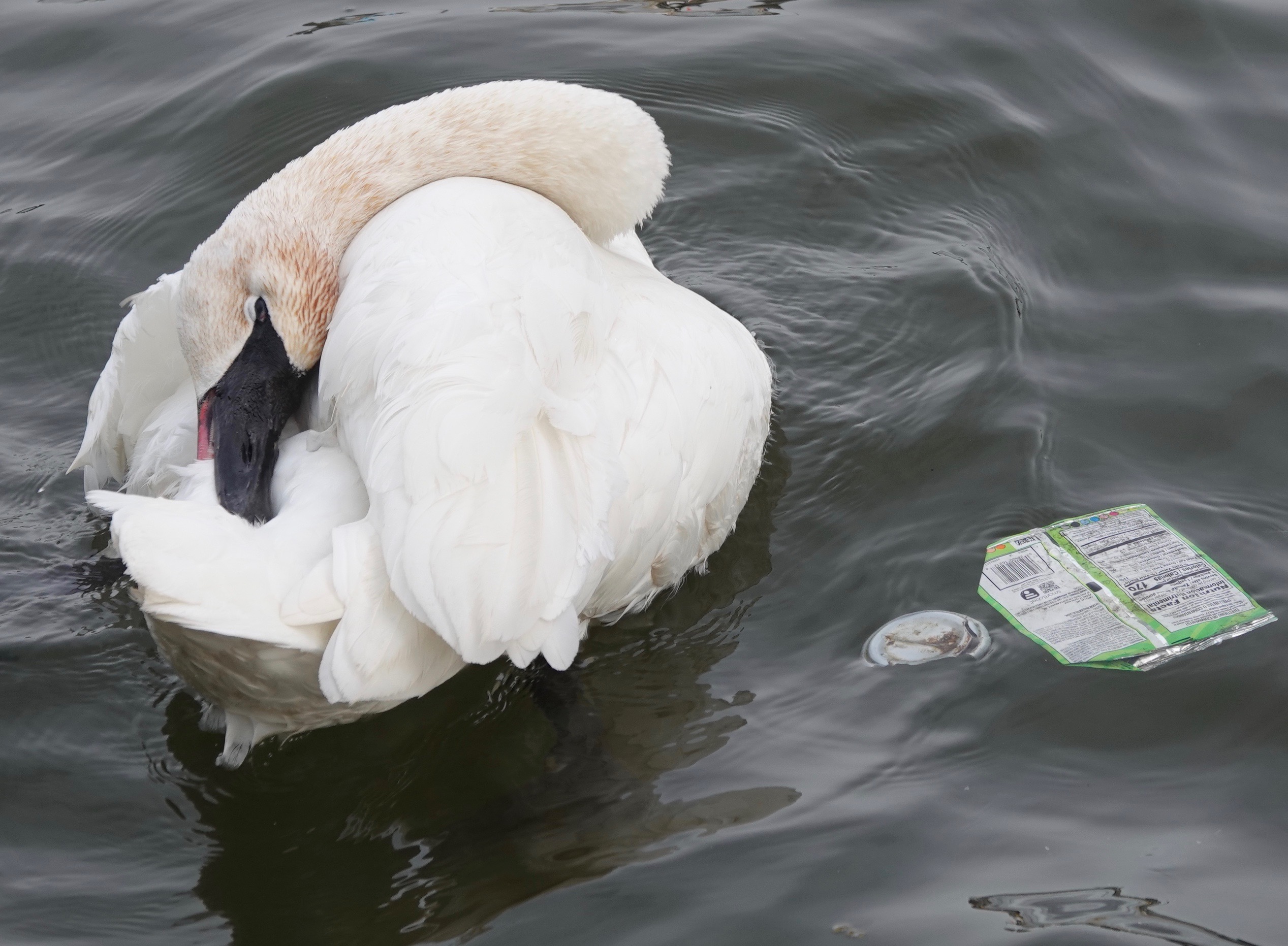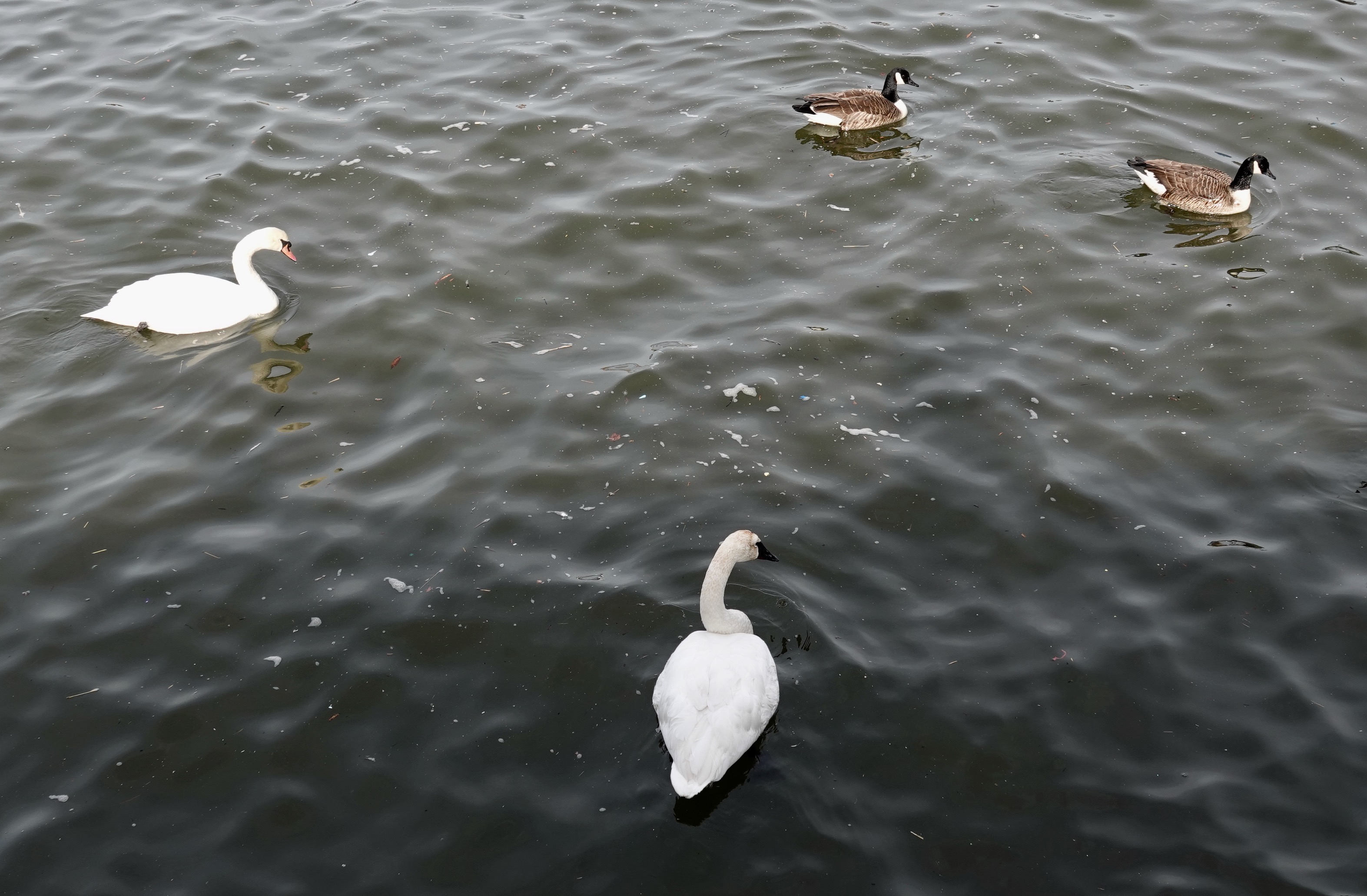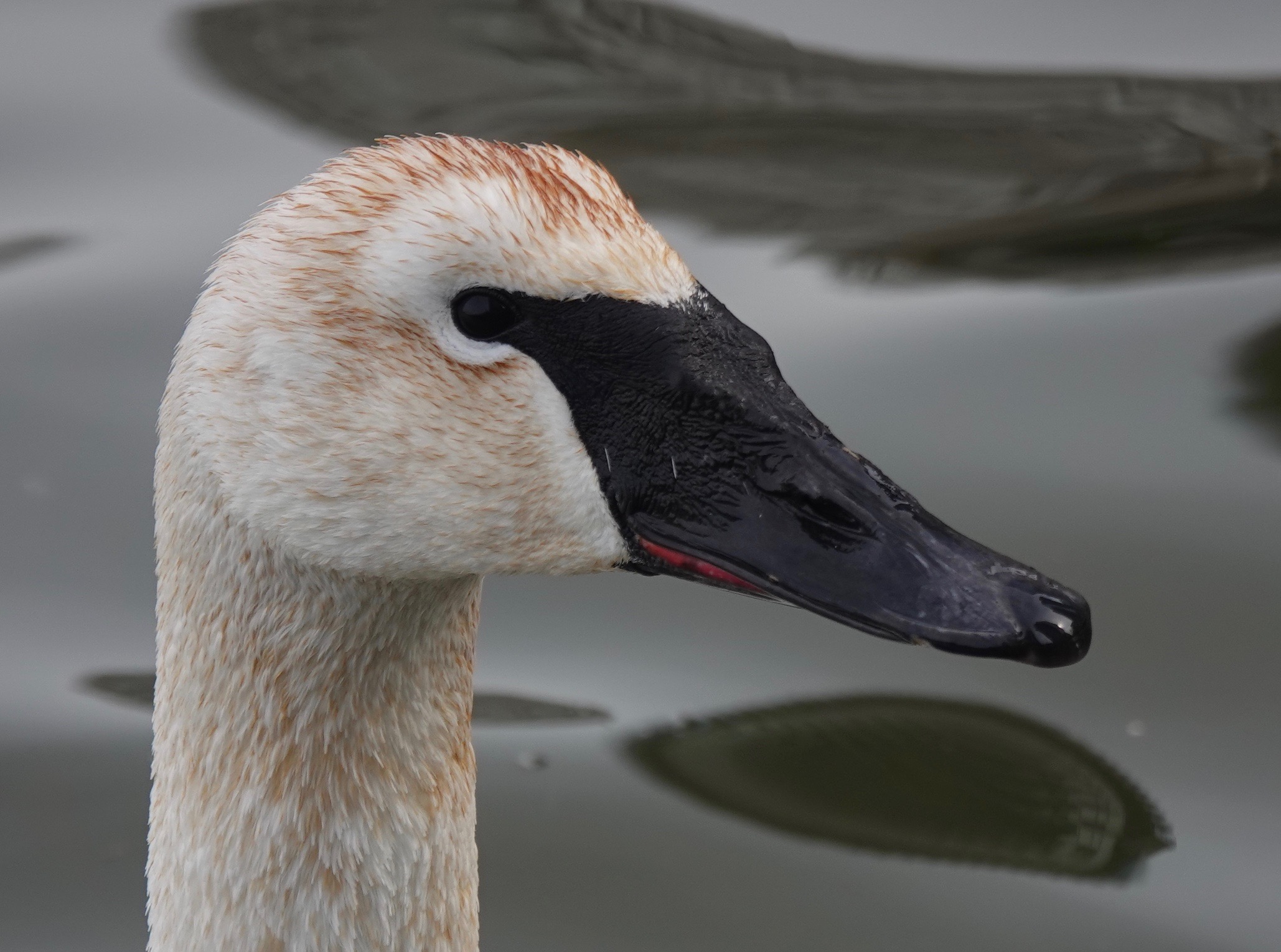 A Trumpeter Swan/Cygnus buccinator has shown up in the East River, hard by the Williamsburg coast.