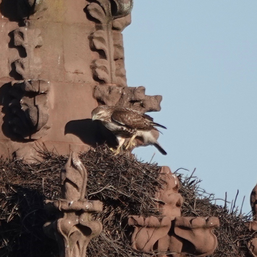 Red-tailed Hawk on the Monk Parakeet nest.
