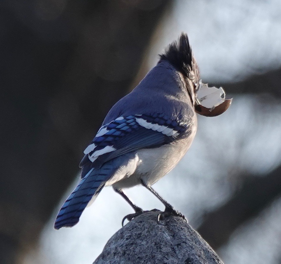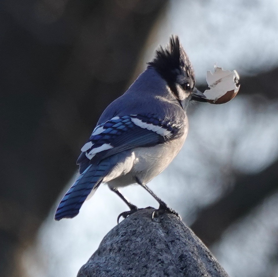 This sure looks like a chicken egg shell. Is somebody raiding the compost? I assume the Blue Jay wants the calcium in this.