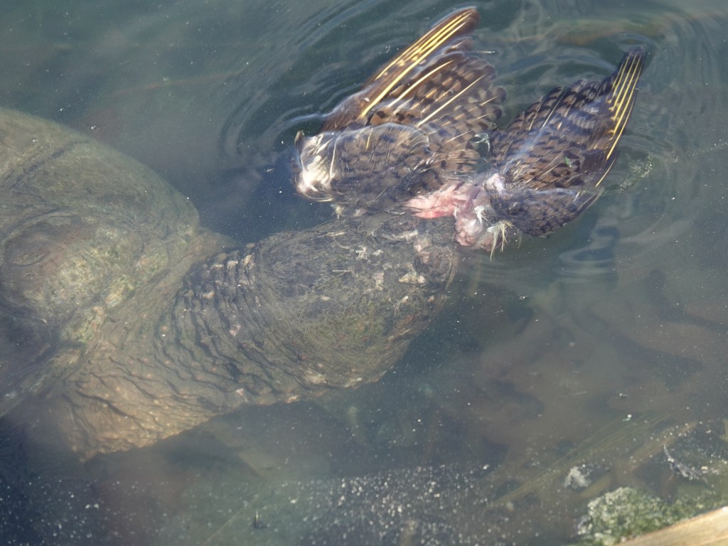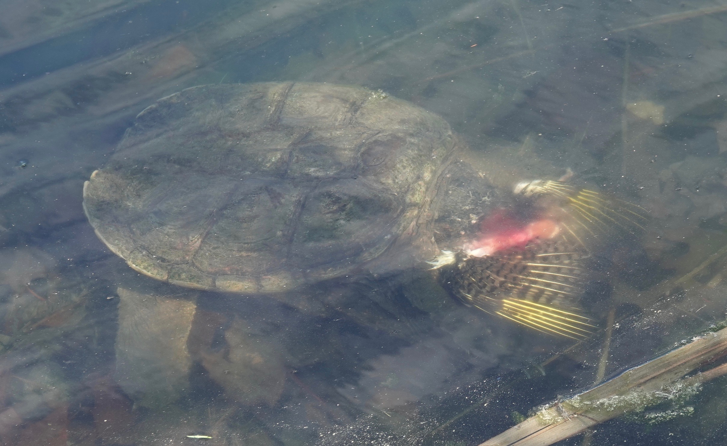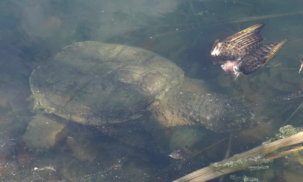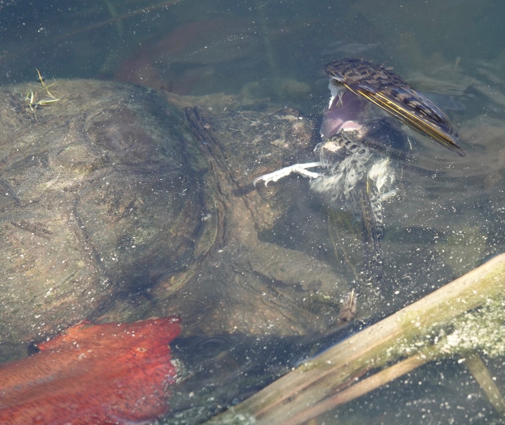 Also nearby in Sylvan Water, a heavy cruiser of a Snapping Turtle. Would the twain meet?