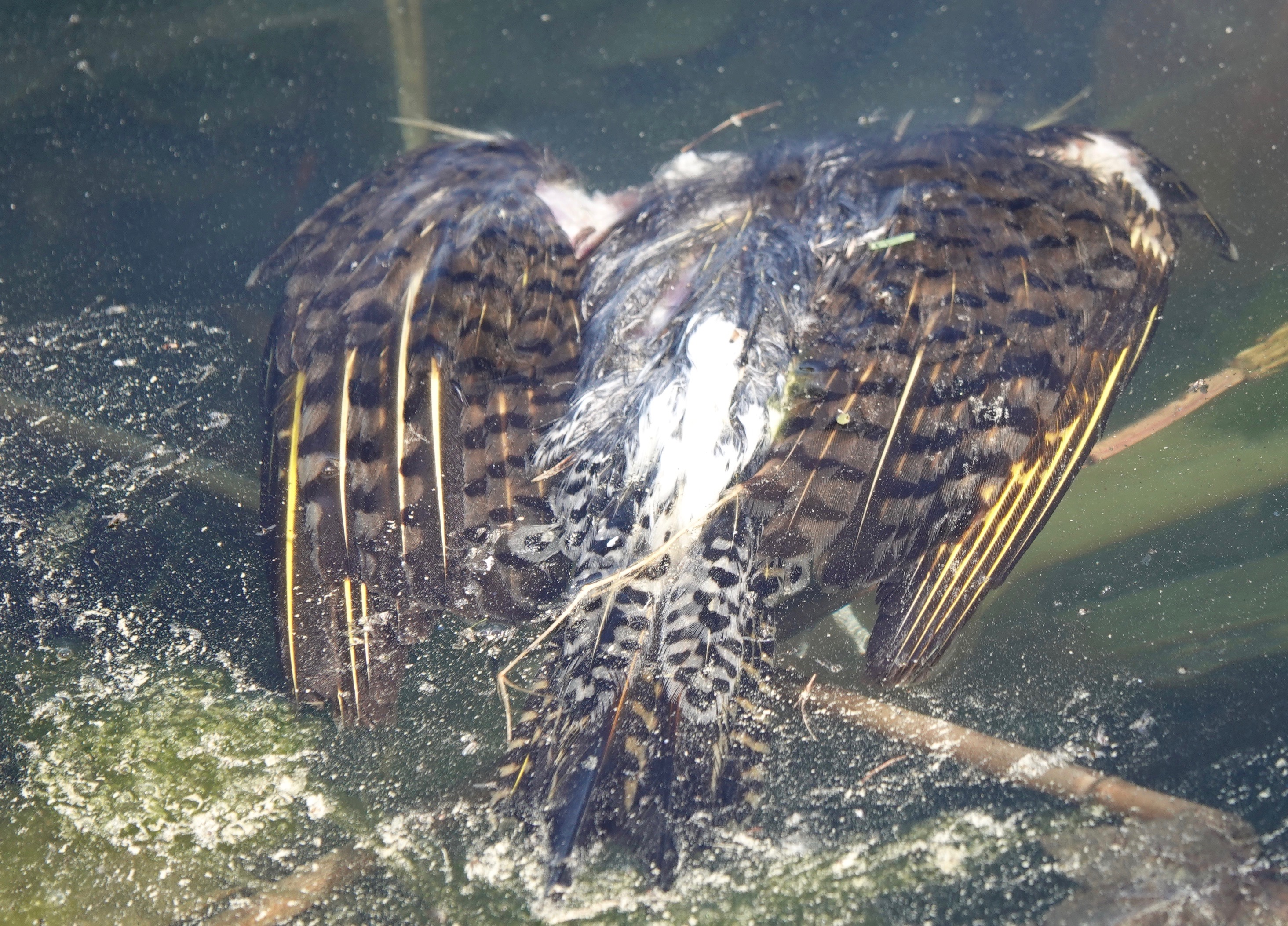Floating in Sylvan Water, a dead Northern Yellow-shafted Flicker. (I don’t know the story before this.)